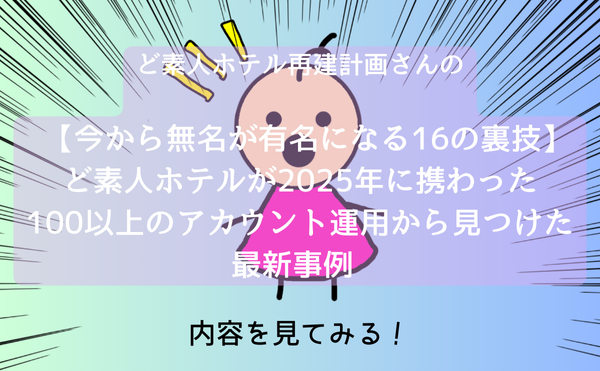 【今から無名が有名になる16の裏技】ど素人ホテルが2025年に携わった100以上のアカウント運用から見つけた最新事例