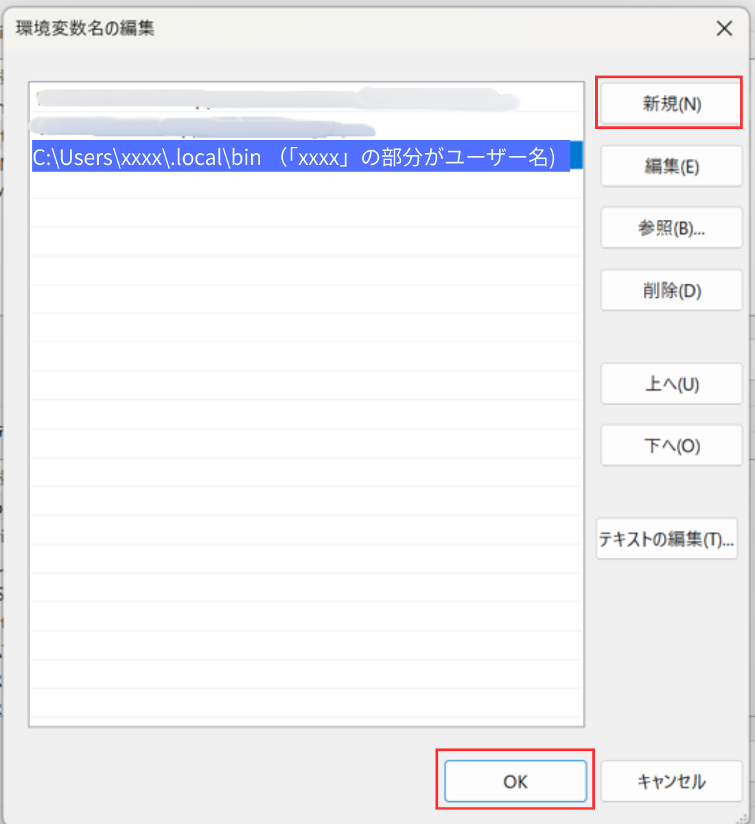 C:\Users\ユーザー名\.local\bin を追加する。
