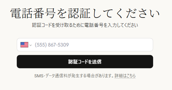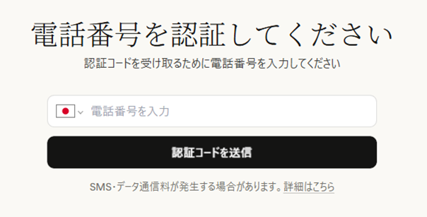👇日本を選択し、電話番号を入力して「認証コードを送信」をクリック。