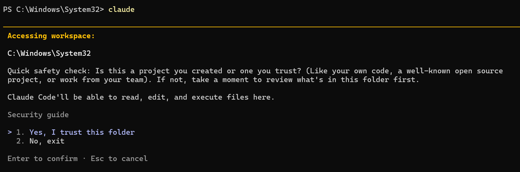 「このフォルダ(C:\Windows\System32)で作業していい?」