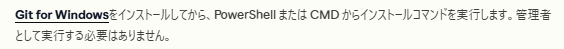 ✅ WindowsではGit for Windowsのインストールが事前に必要(Macは不要)。