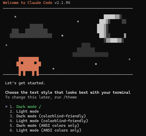 以上の方法でClaude Codeが起動すると、このキャラが出てきます。