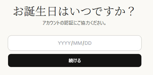 👇誕生日を入力して「続ける」をクリック。(西暦〇〇年/月/日)