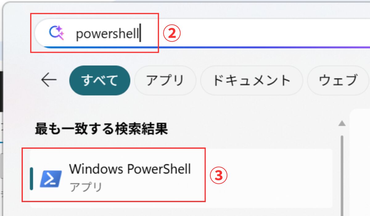👇スタートメニューから Windows PowerShellを開き、claude と入力して