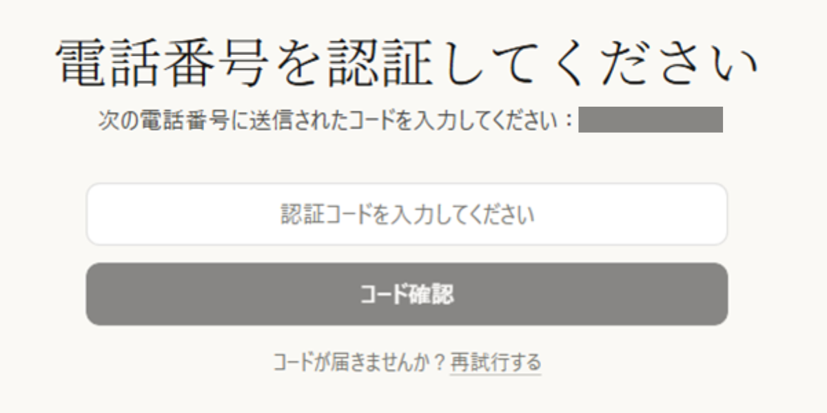 👇入力した電話番号に送られてきたコードを入力して「コード確認」をクリック。