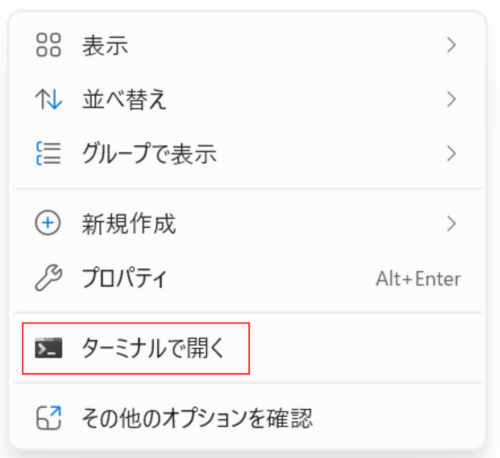 ③ 「ターミナルで開く」を選択