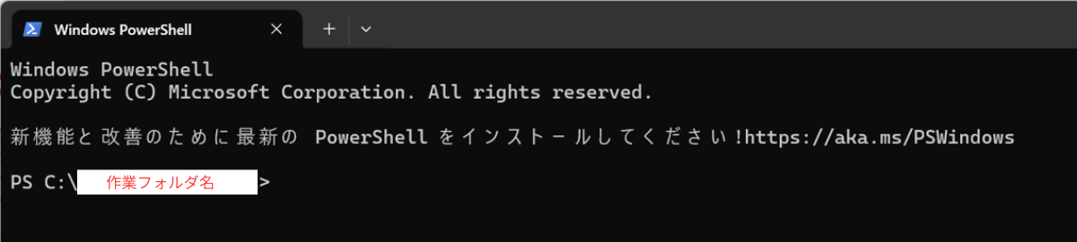 ✅ PowerShellは必ず作業フォルダから右クリックで開く。