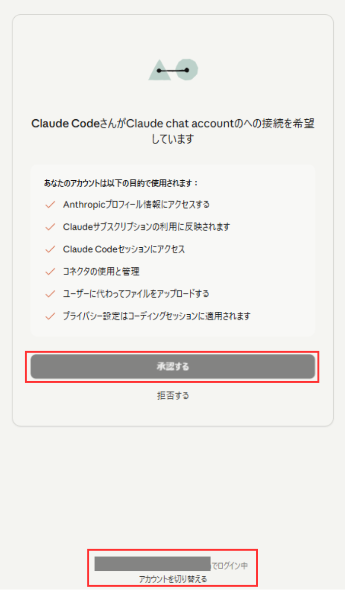Claude Code初回起動時にブラウザでログインすれば自動連携できる。