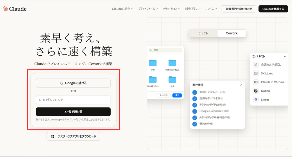Claude公式サイトにアクセス