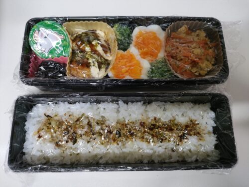 👇「たこ焼き」拡大写真。大きいサイズのお弁当カップに2個入れています。