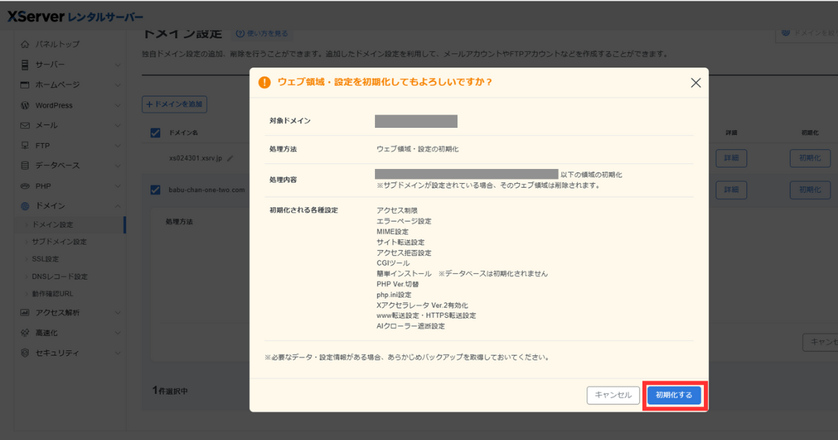 【初心者向け】エックスサーバーでドメインを初期化する方法